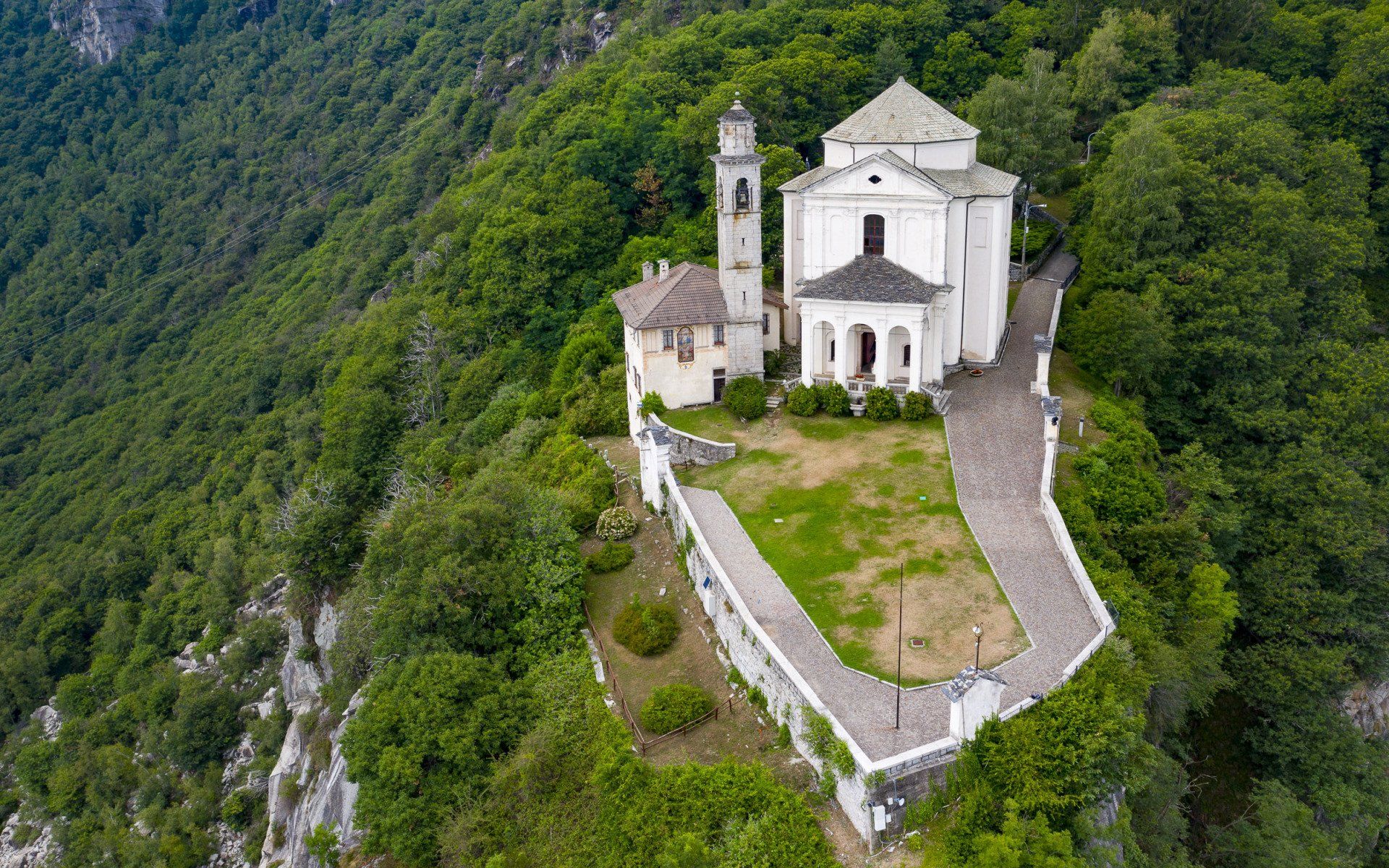 L’attuale complesso, costituito da chiesa, campanile e casa eremitale, fu edificato nella prima metà del XVIII sec., più precisamente nel 1706, su uno sperone roccioso, punto panoramico d’eccezione per abbracciare, con un solo sguardo, tutto il Cusio e i monti della riviera orientale. Per secoli la bianca roccia granitica su cui sorge il santuario venne utilizzata come pietra da taglio.
